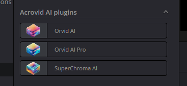 After installing, the plugins will appear in all the OFX compatible hosts in the Acrovid AI plugins folder: